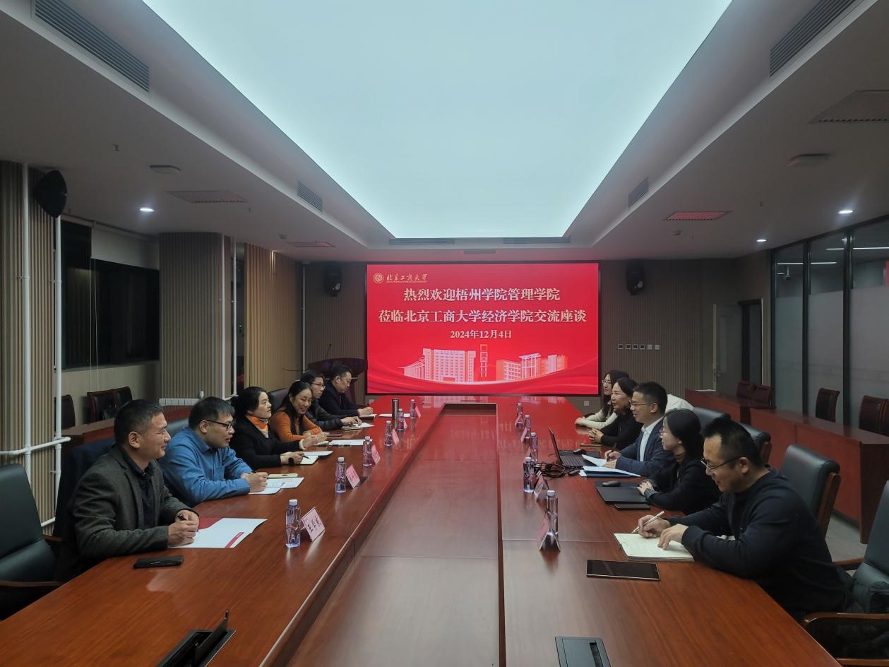 12月4日上午,在中国国际科学技术合作协会交流座谈会上,慕慧娟主任介绍了协会基本情况,分享了协会在国际化科技服务咨询领域、开展国际化科技合作培训以及举办国际学术会议的经验与做法。张堂云院长介绍了梧州学院管理学院的发展情况、重要改革和优势学科特色。双方进一步就科技成果转化、学术交流、科研合作及国际会议举办等进行了深入交流。下午,在北京工商大学经济学院座谈交流会上,经济学院院长詹新宇从办学历史、师资力量、学科建设、专业设置、人才培养、标志性成果、高质量科研等方面介绍了学院的基本情况。与会双方进一步围绕学科建设、课题申报、队伍建设、商科转型、职称评审、教学比赛等方面开展了深入的交流和探讨。