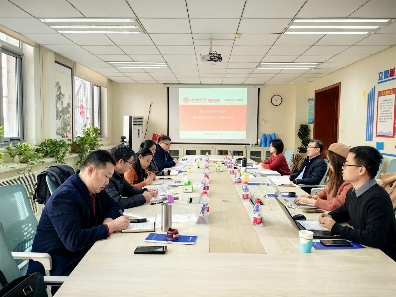 12月3日上午,在北京物资学院物流学院座谈交流会上,党委书记郝跃对张堂云院长一行表示热烈欢迎,副院长褚东亮从办学历史、办学空间、师资力量、学科建设、专业设置、人才培养、标志性成果等方面介绍了学院的基本情况,重点阐述了学院中德班、中美班、中日班、京东学院的特色。张堂云院长希望以此调研为契机,拓展人才培养、科学研究等方面的合作。座谈会上,与会双方围绕学科建设、专业认证、人才培养、队伍建设、虚拟教研室、共享共建数智供应链产业学院等方面开展深入的交流和探讨。调研期间,张堂云一行参观了学院国家级物流系统与技术实验教学示范中心。下午,到北京密云文化旅游发展集团有限公司考察学习,双方在文旅融合发展、合作开发(共建)旅游资源、共建旅游管理硕士点实习实训基地、生态旅游规划与建设等方面开展了深入的交流和探讨。