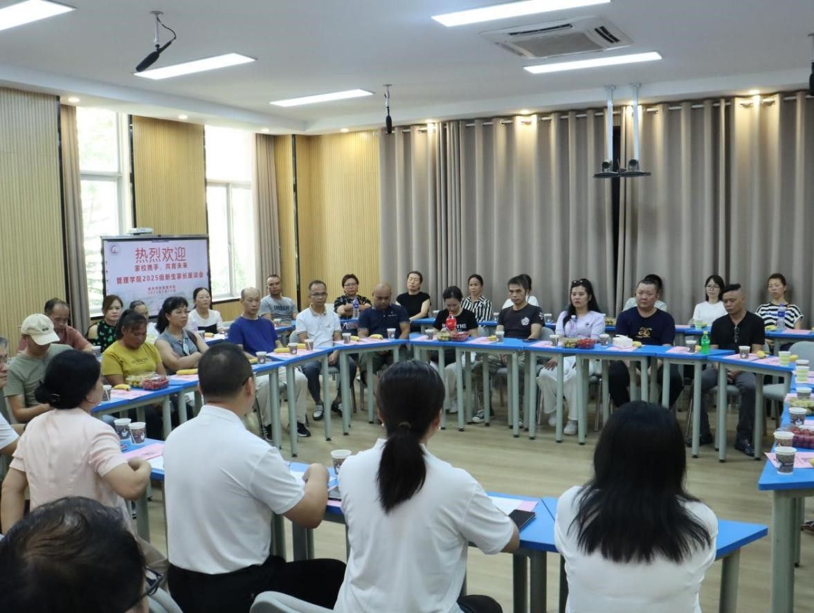 9月12日下午,管理学院召开2025级新生家长座谈会。学院领导班子、各专业教研室主任、新生辅导员以及50多位新生家长代表参加座谈。