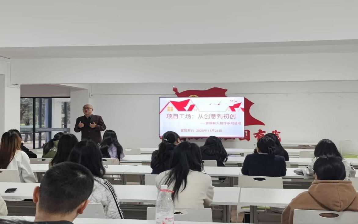 为激发学生创新创业热情,提升“双创”竞赛参赛水平与项目质量。11月26日,管理学院在A6一站式学生社区服务中心开展以“项目工场:从创意到初创”为主题的双创赛分享会,鼓励同学们要敢于走出课堂,敢于实践。