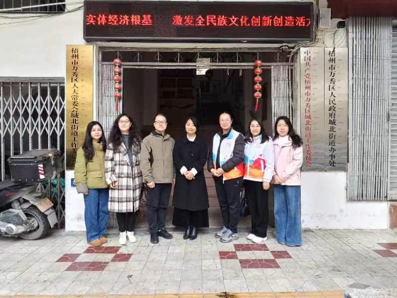 12月25日上午,行政管理专业教研室主任彭顺绪老师带队,到梧州市和合社会服务心理中心和万秀区桂北社区交流学习。桂北社区党支部书记徐梅、梧州市和合社会心理服务中心负责人李睛参加座谈。双方围绕学生实习、就业指导、职业资格证书考取、社会培训合作等议题深入交流,并初步达成合作意向。