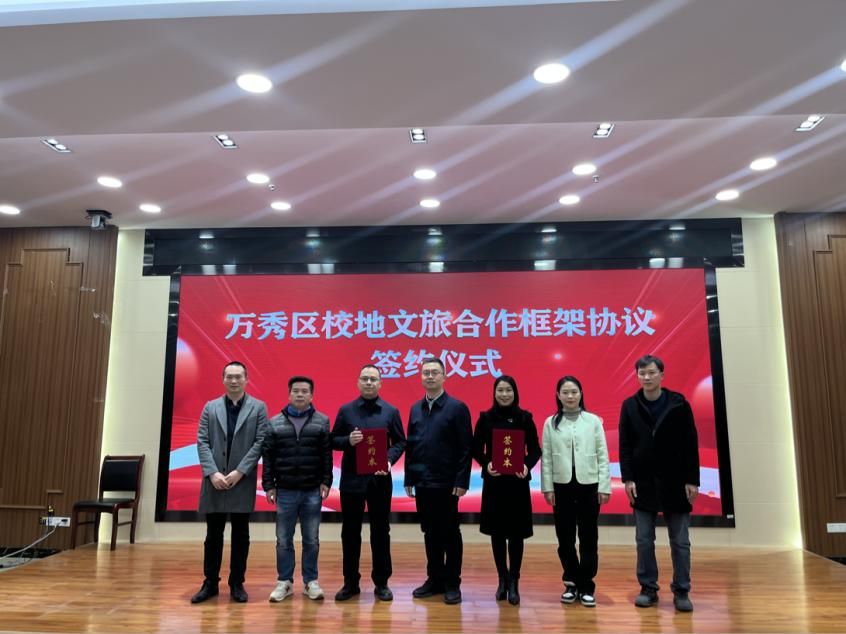 仪式上,管理学院与万秀区文化体育和旅游局签订了《文旅融合发展合作框架协议》。
