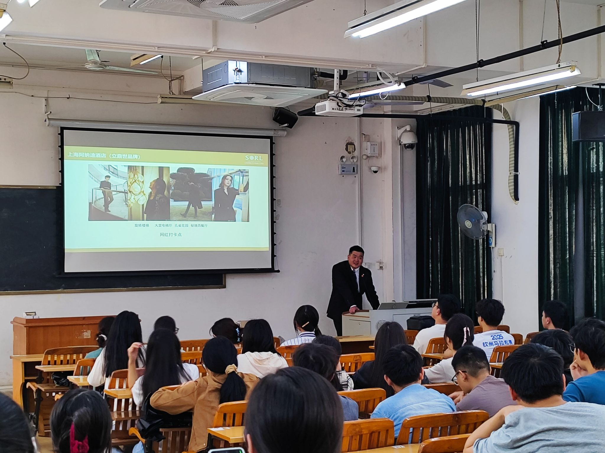 程振总监介绍了上海建工集团附属酒店的基本情况以及人才需求情况。他提到,酒店的高质量发展离不开专业人才的支撑,期待与管理学院在人才培养、实习实训等方面开展深度合作。洽谈结束后,程振总监还为2026届旅游管理、酒店管理专业的毕业生做了企业校招宣讲。