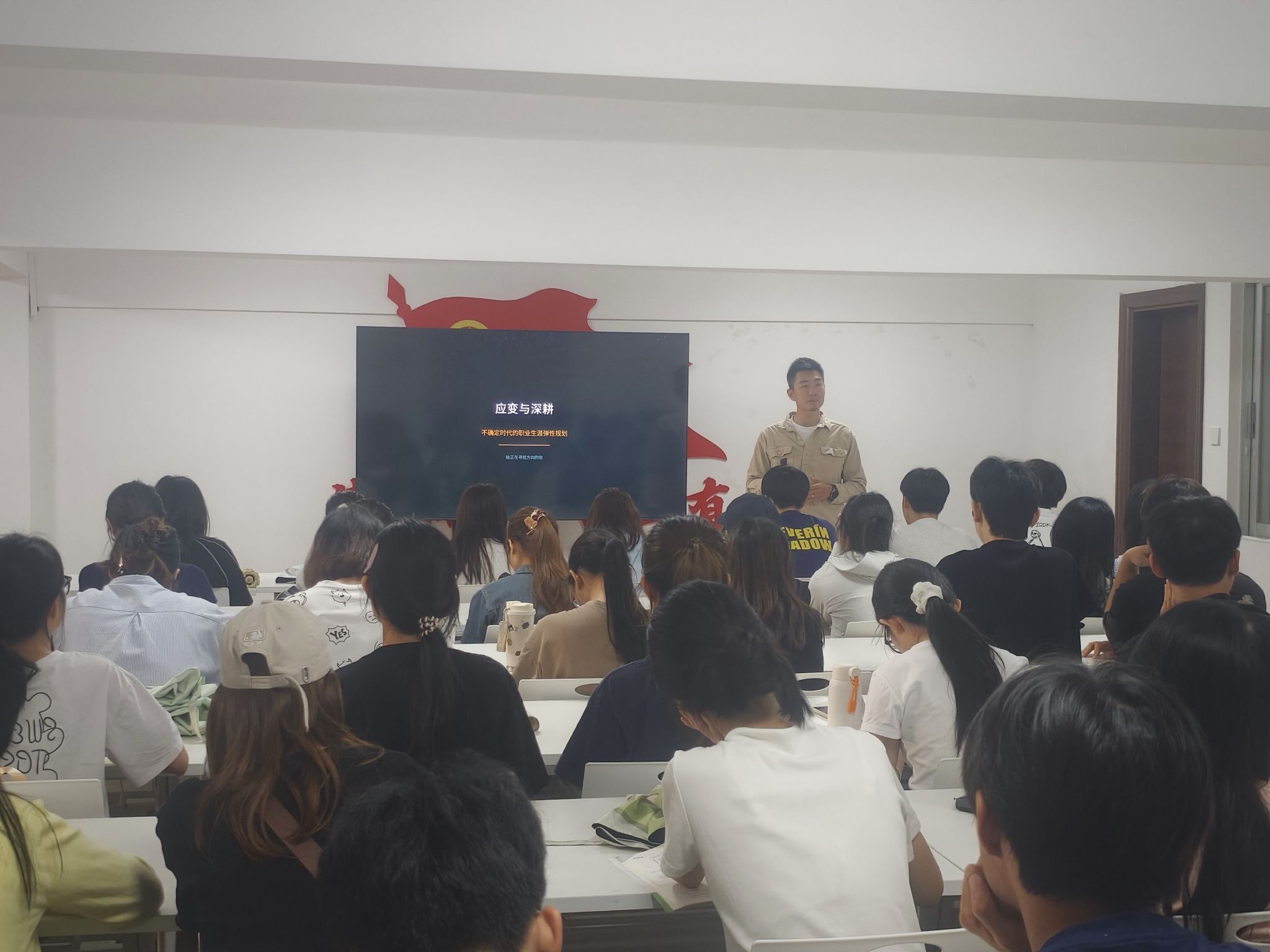 梁尹杰老师围绕行业不确定性、专业核心竞争力构建等内容展开分享,引导学生理解“应变不是随波逐流,深耕不是固步自封”,鼓励大家主动设计职业生涯弹性计划,在专业领域持续积累、打造个人护城河,帮助同学们破除职业焦虑,明确长路径,以期在未来的学习中兼顾应变能力与专业定力,以更加从容的姿态应对职业发展的挑战。