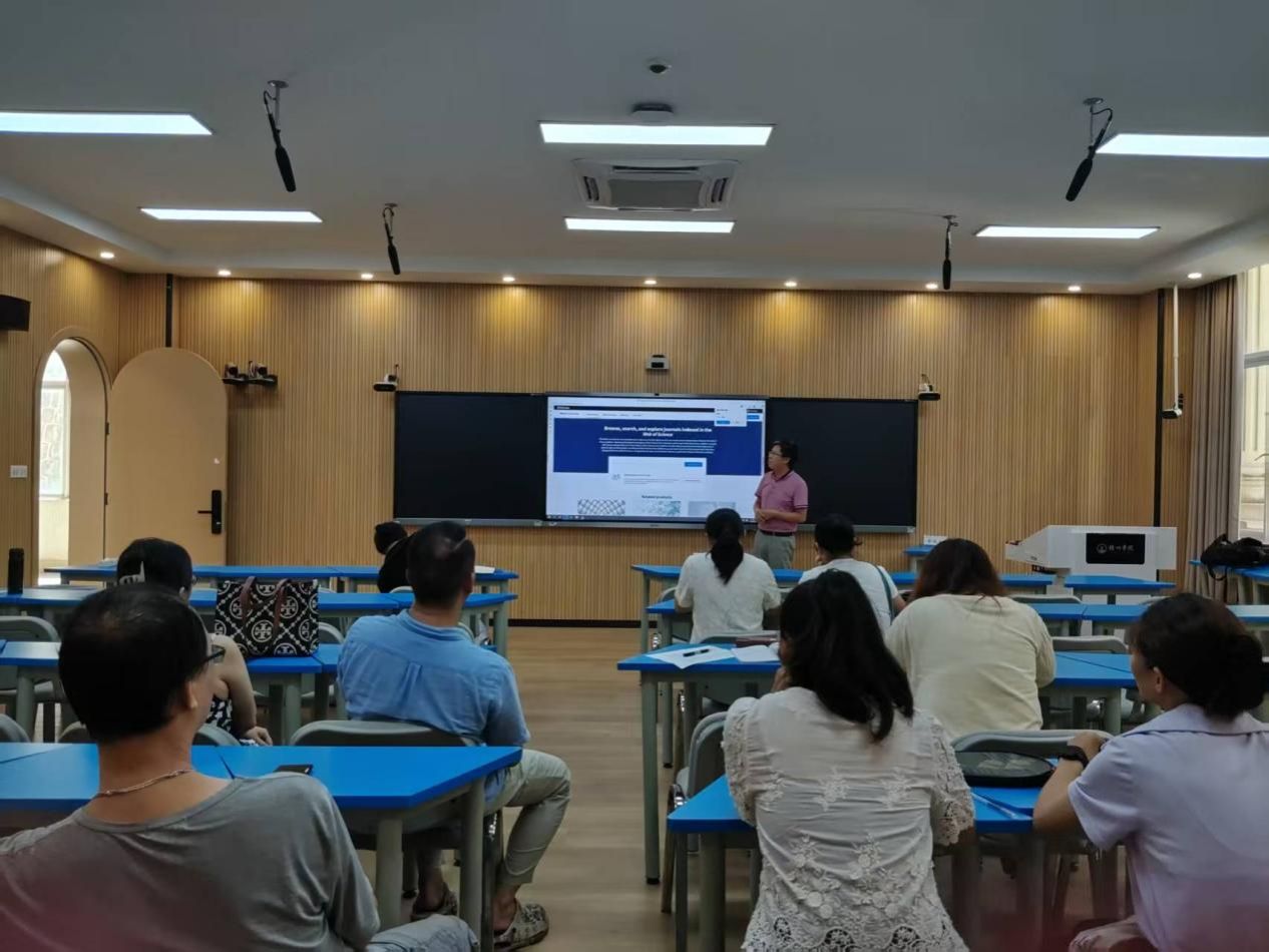 副院长乐小兵围绕“国际权威期刊论文投稿”,与参会的老师进行交流。他聚焦国际权威期刊论文投稿过程,从数据库资源利用、期刊匹配、文献搜索与分析等方面进行分享,帮助教师把握前沿研究、提振投稿信心。