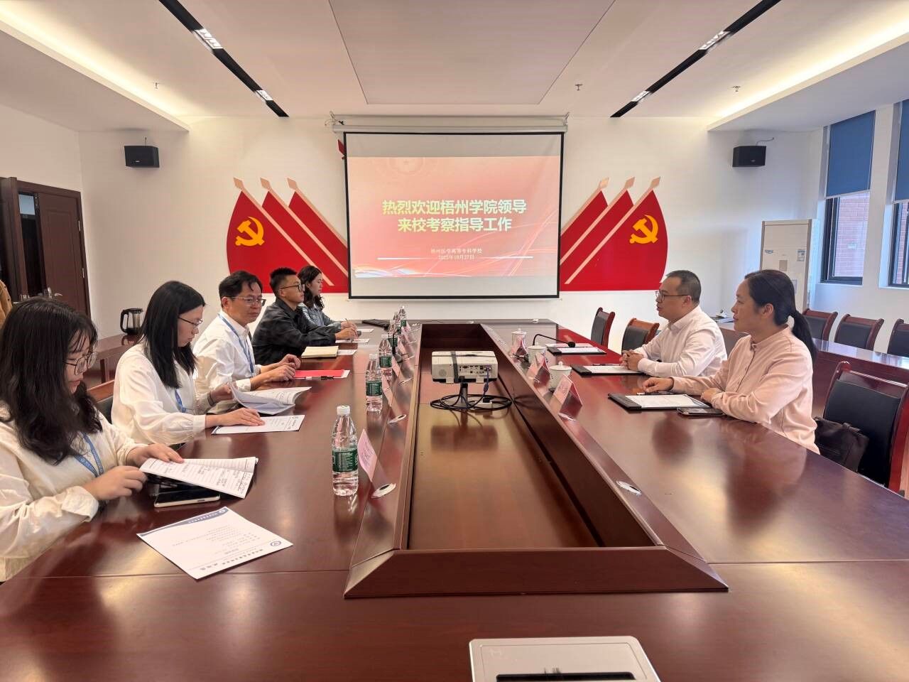 为深化校校合作,拓展学生实习实践平台,推动应用型人才培养模式创新,10月27日下午,梧州学院管理学院党委书记朱宇乾率队赴梧州医学高等专科学校进行合作洽谈。梧州医学高等专科学校人事处处长袁宪宇参加洽谈。
