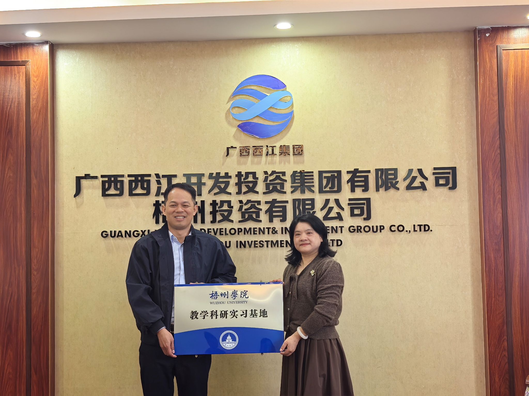 洽谈结束后,双方举行了梧州学院教学科研实习基地挂牌仪式。