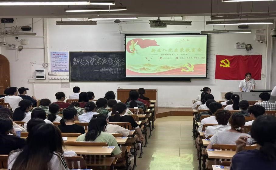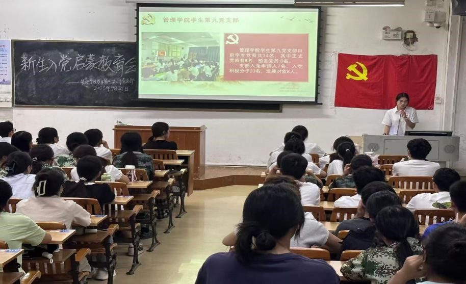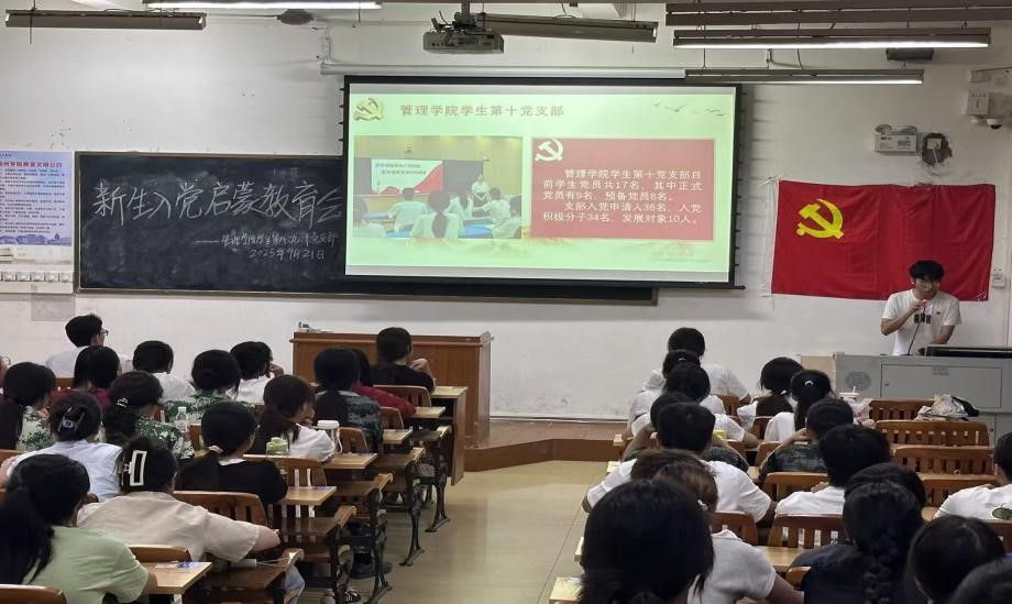 9月21日,梧州学院管理学院学生第八、九、十党支部在明理楼S405教室,联合举办2025级新生入党启蒙教育大会,由黄思燕、覃嘉怡、黄神主持,三支部班子成员及全体2025级新生参会。