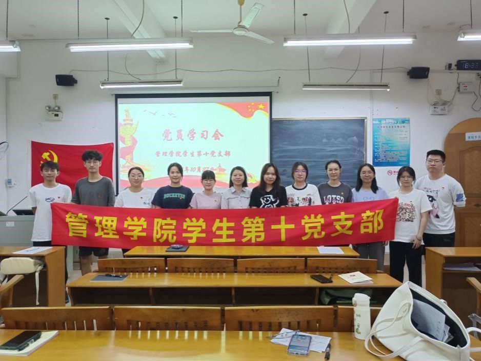 为不断提升党员同志的党性修养和理论水平,10月27日下午,管理学院学生第十党支部在明理楼M305教室召开党员学习会。本次会议由罗城同志主持,支部全体党员参加会议。