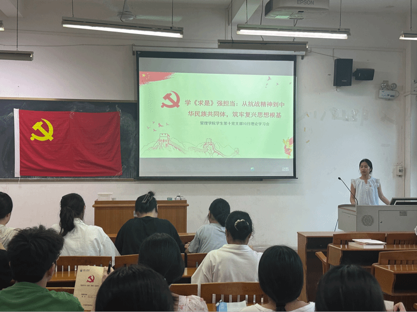 10月15日,梧州学院管理学院学生第十党支部在明理楼M610召开专题理论学习会,组织支部党员集中学习《求是》2025年第18期、第19期重要文章。支部书记余映棋主持会议,全体党员参加学习并交流感悟。