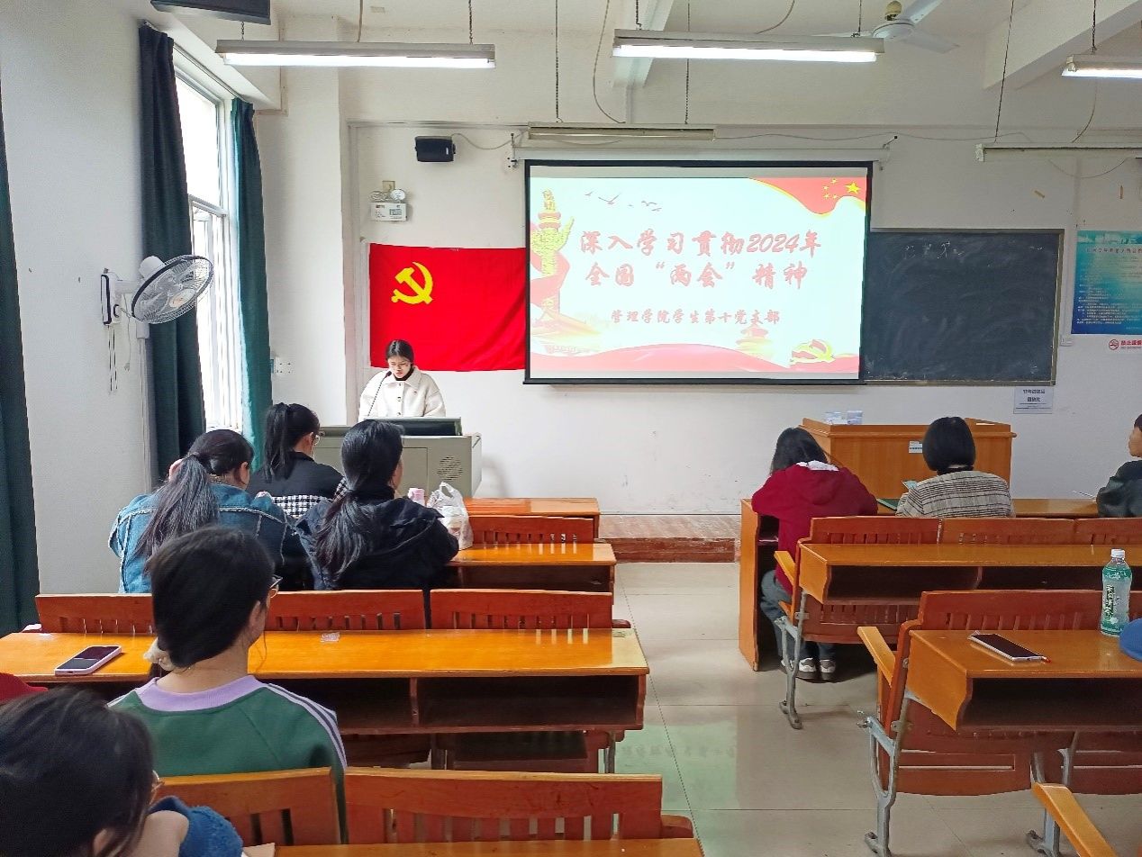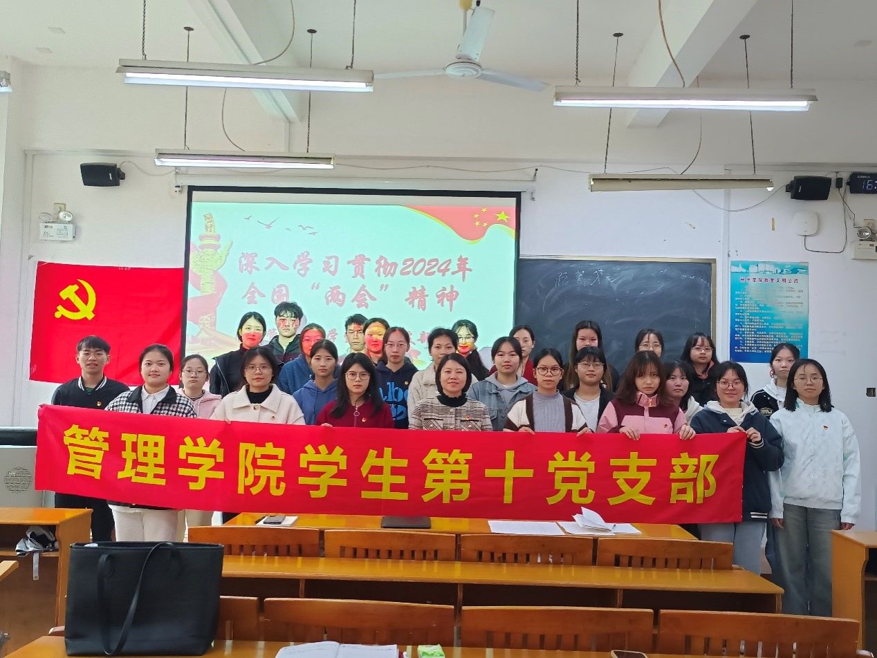 近日,随着全国“两会”的召开,管理学院学生第十党支部积极响应党的号召,于2024年3月7日下午在明理楼M304开展深入学习贯彻“两会”精神的会议,以实际行动践行党的教育方针,推动支部工作再上新台阶。