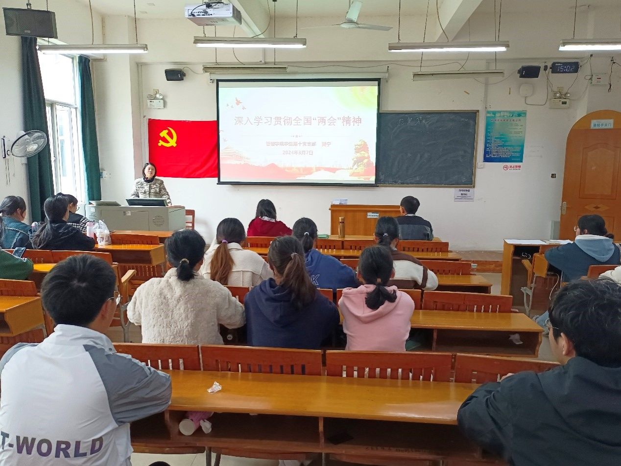 会议由涂霞同志主持,在校党员以及21、22级非毕业班在校发展对象、入党积极分子参加会议。会议伊始,党支部书记冀宁同志从宏观角度出发,对两会精神进行了全面深入的解读,强调了两会精神的重要性和指导意义。