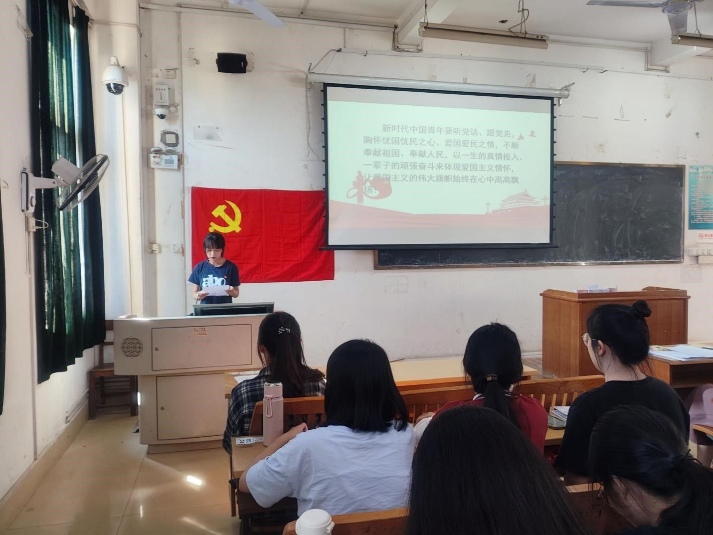 会议伊始,冀宁书记为支部全体成员上了一堂生动的党课,通过解读习近平的话语解释了为什么要爱国,并深刻阐述了爱国情怀的深远意义。