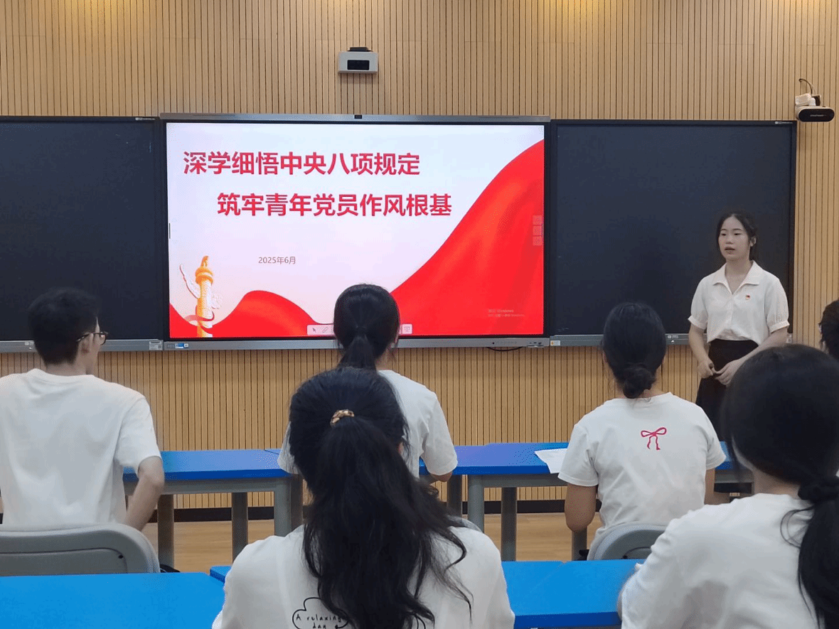 2025年6月25日,管理学院学生第十党支部开展了一场主题为“深学细悟中央八项规定 筑牢青年党员作风根基”的专题党课。本次党课由党支部书记余映棋主讲,支部全体党员参加。