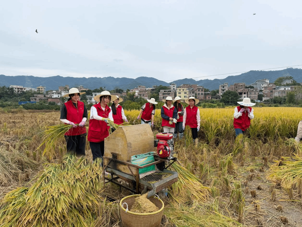 师生党员首先来到桂林银行设在夏郢镇的普惠金融综合服务点,详细了解服务点的日常运营以及业务开展情况。与当地妇女联合会团队负责人交流,了解该服务点助力乡村振兴的情况,直观感受金融服务下沉一线助农、惠农的生动实践。随后,师生党员走进田间,拿起镰刀、弯腰割稻、协作脱粒,体会粮食来之不易,增强党员艰苦奋斗、服务基层的意识。