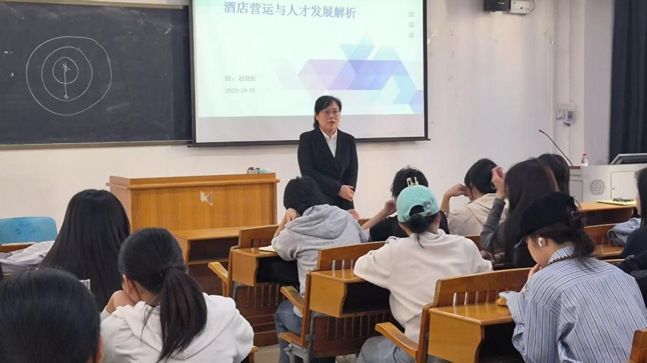 10月28日下午,梧州江滨国际大酒店人力资源总监赵晓虹到校,为管理学院2022级酒店管理专业学生作《酒店运营与人才发展解析》专题讲座。
