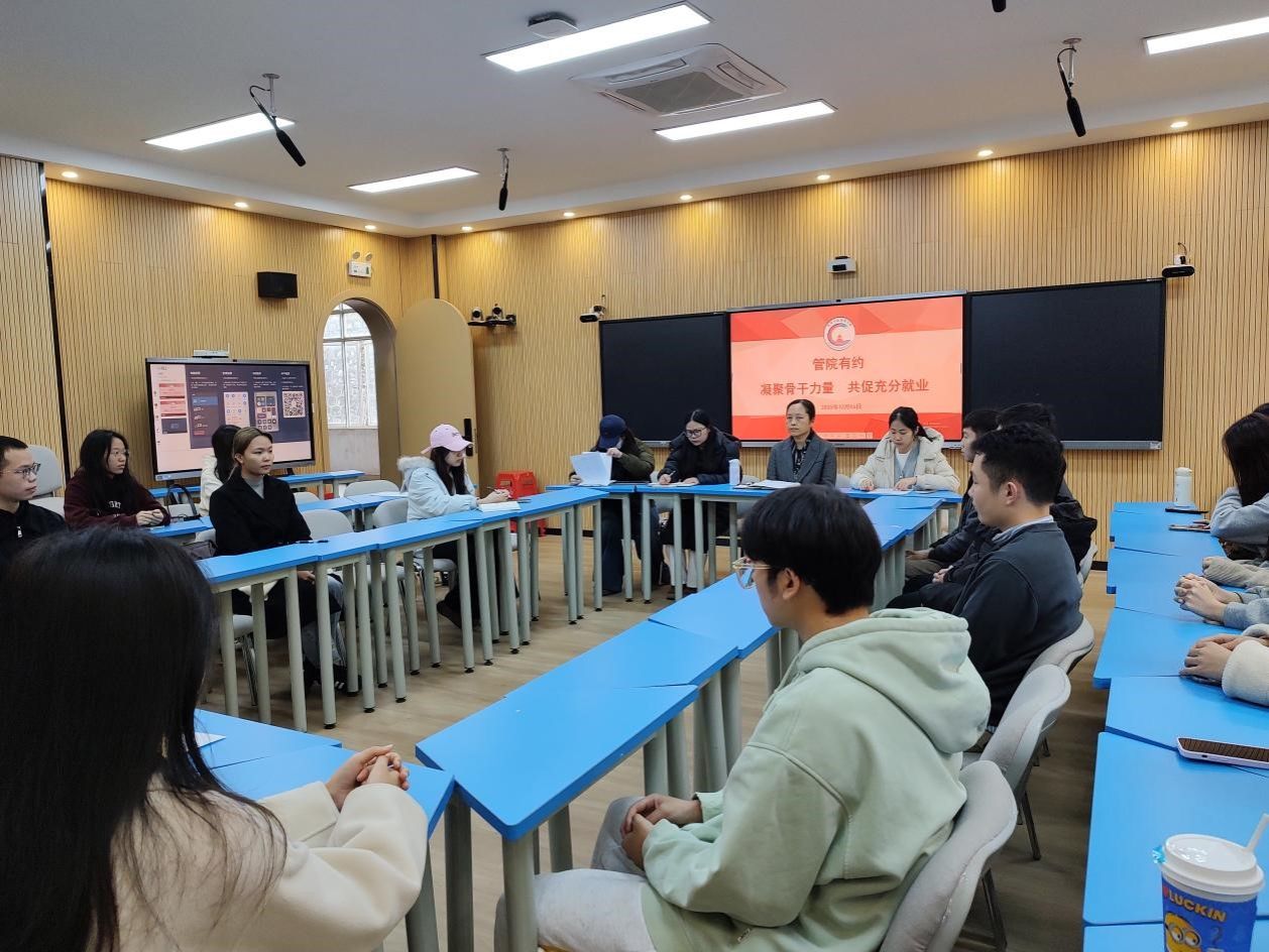 座谈会上,学生干部代表立足班级实际,交流了同学们的就业意向、求职进展、学业与就业衔接中的现实状态,并反馈当前存在的共性问题。